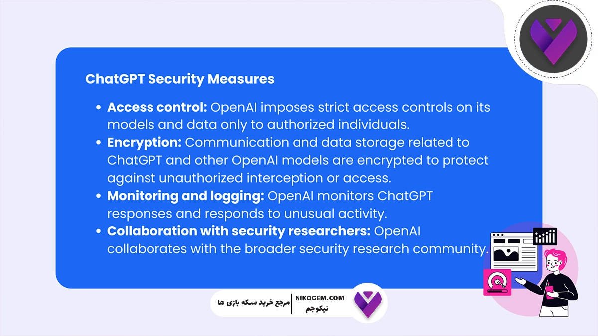 چرا امنیت در ChatGPT اهمیت دارد؟ باگسترش هوش مصنوعی و بهویژه ChatGPT، استفاده از این ابزار در زندگی روزمره، کسبوکارها و حتی امور حساس به شدت افزایش یافته است. همانطور که ما بهدنبال بهرهوری بیشتر از این فناوری هستیم، باید توجه ویژهای به امنیت اطلاعات داشته باشیم. هر دادهای که وارد ChatGPT میکنیم میتواند ارزشمند باشد و اگر اصول امنیتی رعایت نشود، خطرات زیادی برای حریم خصوصی و امنیت کاربران به همراه خواهد داشت.در سایت نیکوجم علاوه بر خرید اکانت های پرمیوم و خرید گیفت کارت می توانید برای خرید chatgpt نیز اقدام کنید.