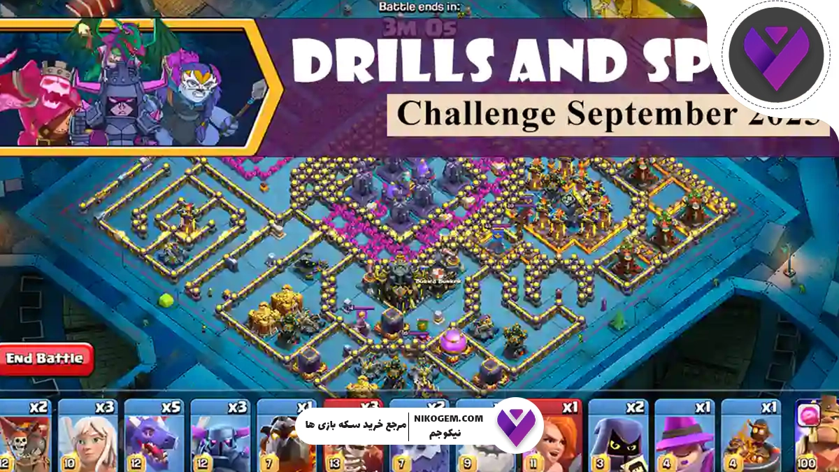 کلش اف کلنز همواره با چالشهای متنوع و استراتژیک خود توانسته بازیکنان را درگیر رقابتهای هیجانانگیز کند. یکی از مهمترین این رقابتها، چالش Drills and Spills است که بازیکنان را وادار میکند تا با ترکیب نیروهای خاص و تاکتیکهای دقیق، بتوانند سه ستاره کامل از این چالش دریافت کنند. در این مقاله، با تحلیل عمیق و مرحله به مرحله، روشهای کاربردی برای 3 ستاره کردن چالش Drills and Spills را بررسی میکنیم تا هیچ بازیکنی در مسیر پیروزی دچار سردرگمی نشود.درنیکوجم علاوه بر خرید جم کلش آف کلنز و خرید بلیط طلایی می توانید نکات آموزشی بازی کلش را نیز دریافت کنید.