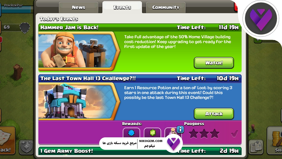 - مدیریت زمان: بازیکنانی که میخواهند سریعتر به مراحل بالاتر برسند، با استفاده هوشمندانه از همر جم میتوانند فاصلهی خود را با رقبا کاهش دهند. با همر جم، میتوان ارتقاها را با ایونتهای بازی هماهنگ کرد تا دو برابر سود گرفت.