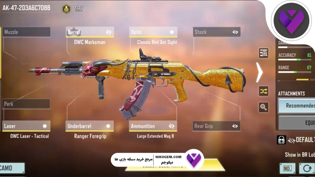 • AK47: مناسب برای بازی‌های تاکتیکی، کنترل منطقه و نبردهای برد متوسط تا دور. اگر ترجیح می‌دهید از فاصله‌ای امن دشمنان را از بین ببرید، AK47 انتخاب ایده‌آل شماست.
