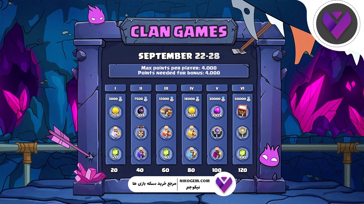 در کلن گیم سپتامبر 2025 کلش اف کلنز، بازیکنان با مجموعه‌ای تازه از چالش‌ها، جوایز و ماموریت‌های استراتژیک روبه‌رو می‌شوند. این ماه، سوپرسل با ارائه به‌روزرسانی‌های متنوع و جذاب، بار دیگر توانسته توجه گیمرها را به خود جلب کند. در این مقاله ما به‌طور کامل به بررسی ساختار، ماموریت‌ها و جوایز این کلن گیم خواهیم پرداخت و بهترین راهکارها برای کسب حداکثر امتیاز و پاداش‌ها را معرفی می‌کنیم.درنیکوجم علاوه بر خرید جم کلش آف کلنز و خرید بلیط طلایی  می توانید نکات آموزشی بازی کلش را نیز دریافت کنید.