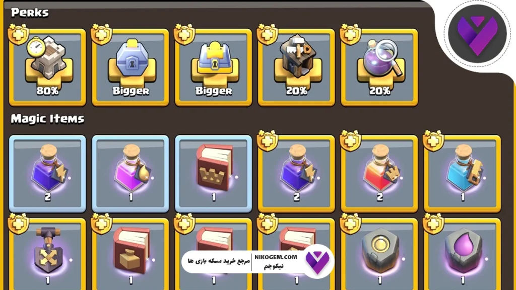• کتاب قهرمانان (Book of Heroes) جهت ارتقای سریع هیروها.