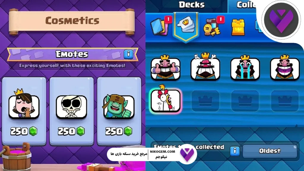 - ایموتهای کارتهای افسانهای مانند Mega Knight یا Princess.